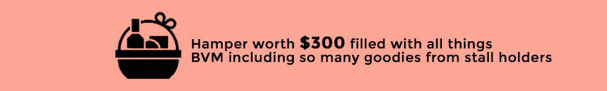 Hamper worth $300 filled with all things BVM including so many goodies from stall holders
